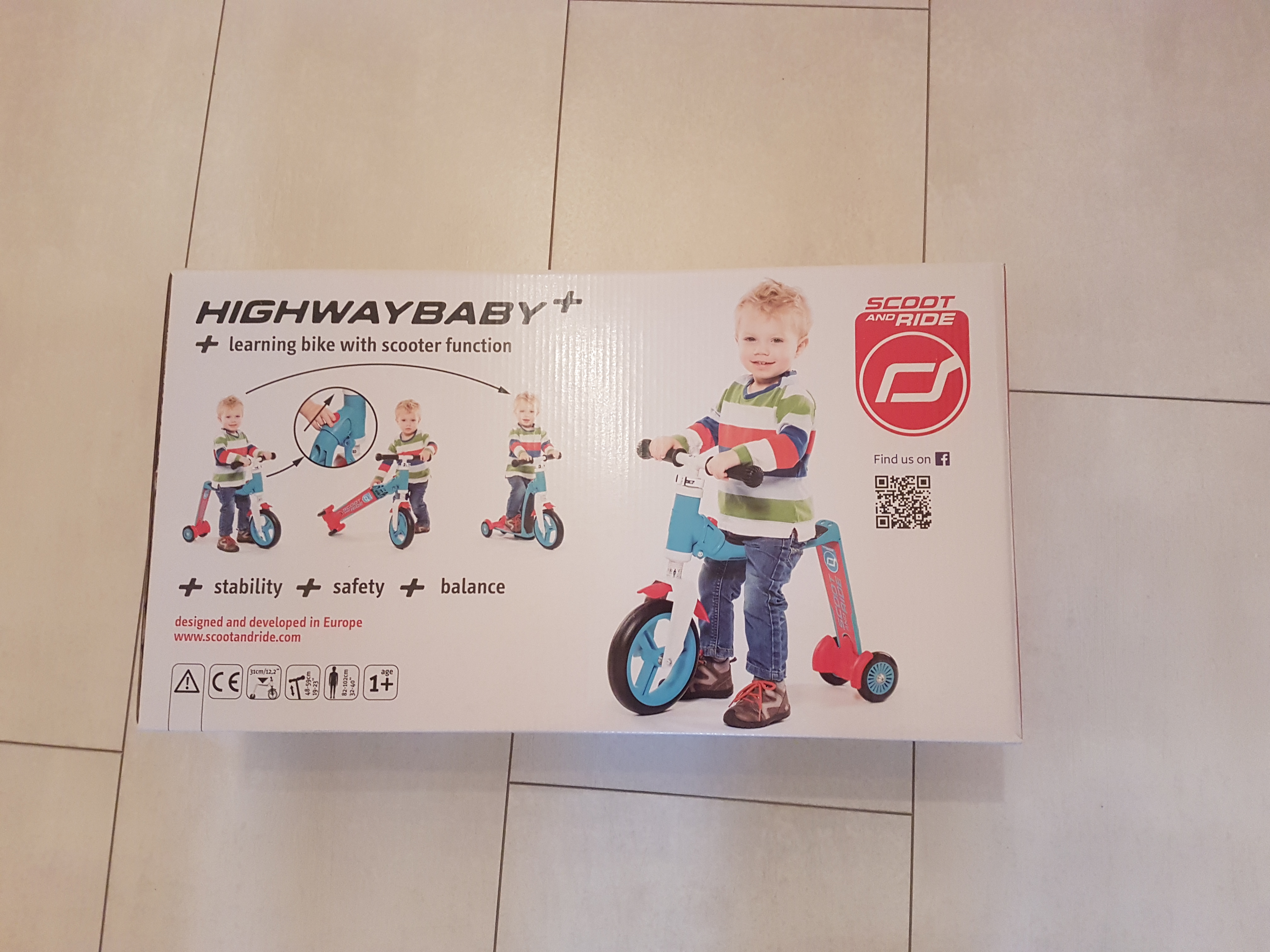 Nach robbend, krabbelnd und torkelnd bewegt sich mein Sohn mittlerweile auf seinen zwei Beinen fort. Seine Geschwindigkeit und Reichweite dabei stehen allerdings in keiner Relation zu seiner Neugierde. Zu langsam – allerdings nur für ihn – erreicht Samuel die Dinge seiner Begierde. Als Vater sah ich natürlich die Notwendigkeit, seine Wege zu beschleunigen und für Autonomie auf seinen Routen zu sorgen. Ein fahrbarer und selbst steuernder Untersatz musste her. Jetzt bekam ich die Möglichkeit, den Highwaybaby von Scoot & Ride kostenlos testen zu dürfen. Die Idee, dass ein Fortbewegungsmittel zwei Funktionen erfüllt – Roller und Laufrad – und mit dem Kind „mitwächst“, klang schon sehr vielversprechend.