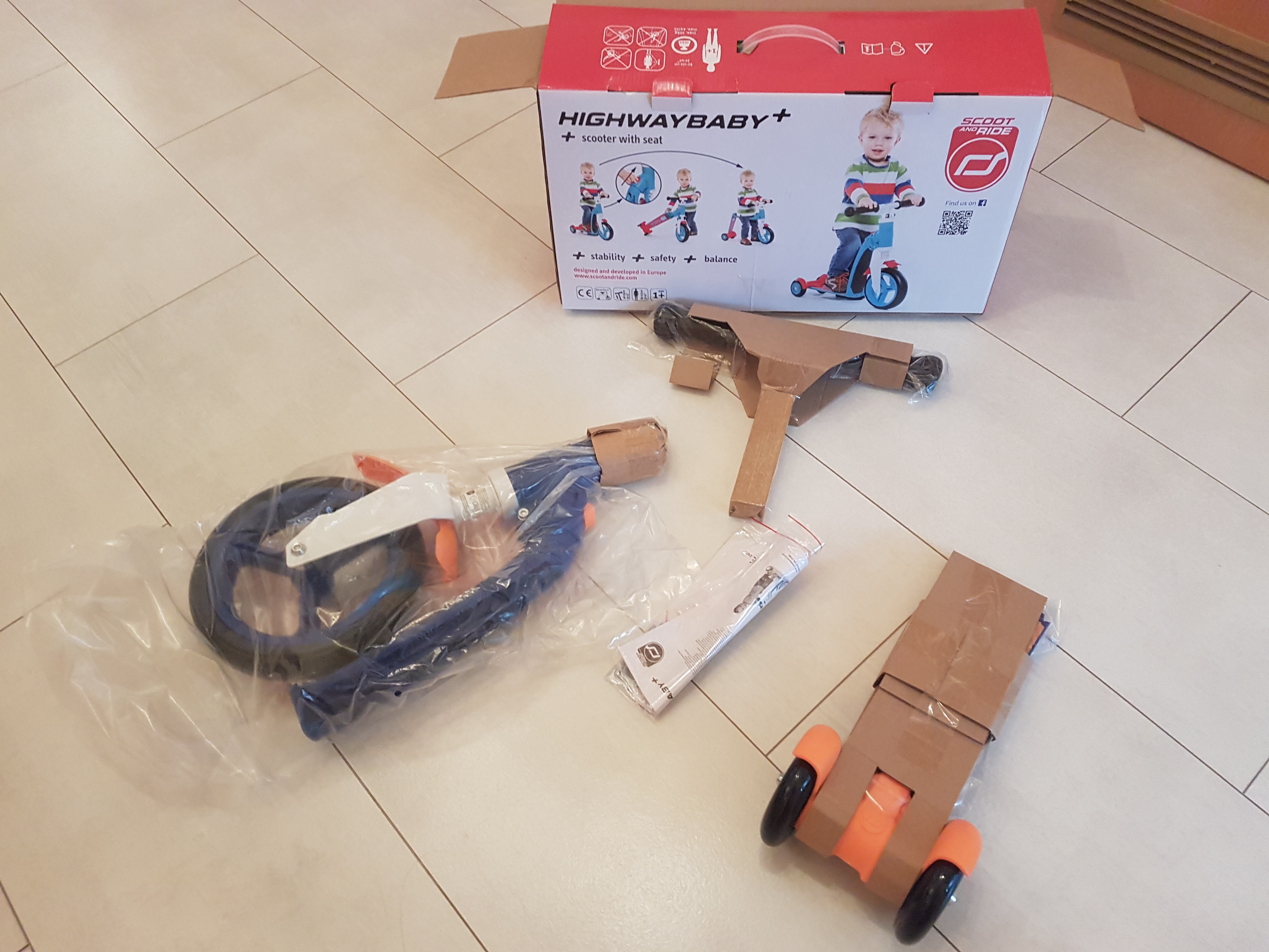 Das Ding kam in einem kompakten Paket per Post. Drei Teile und eine Beschreibung lösten sogar bei mir Zuversicht aus, den Roller ohne fremde Hilfe zusammen bauen zu können. Die leicht verständlichen Piktogramme in der Anleitung bestärkten mich als noch immer traumatisierten Kinderwagen-Aufbauer dabei. In weniger als fünf Minuten stand der kleine Highwaybaby bereits fahrbereit vor mir. Und tatsächlich: Das Ding wirkte stabil, leicht manövrierbar und sah dazu richtig gut aus. Aber viel mehr stellte sich die Frage, was mein Sohn wohl zu seinem neuen Mitglied des Fuhrparks sagt.